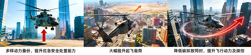 这一技术路径能直接带来多重优势:显著提升起飞载荷与飞行机动性,持续降低油耗与碳排放,同时大幅增强飞行安全性。作为核心部件的电池技术也将迎来颠覆性变革,其能量密度、功率性能、使用寿命、安全性,以及更智能的管理系统,均是支撑未来混动直升机卓越飞行性能的关键要素。