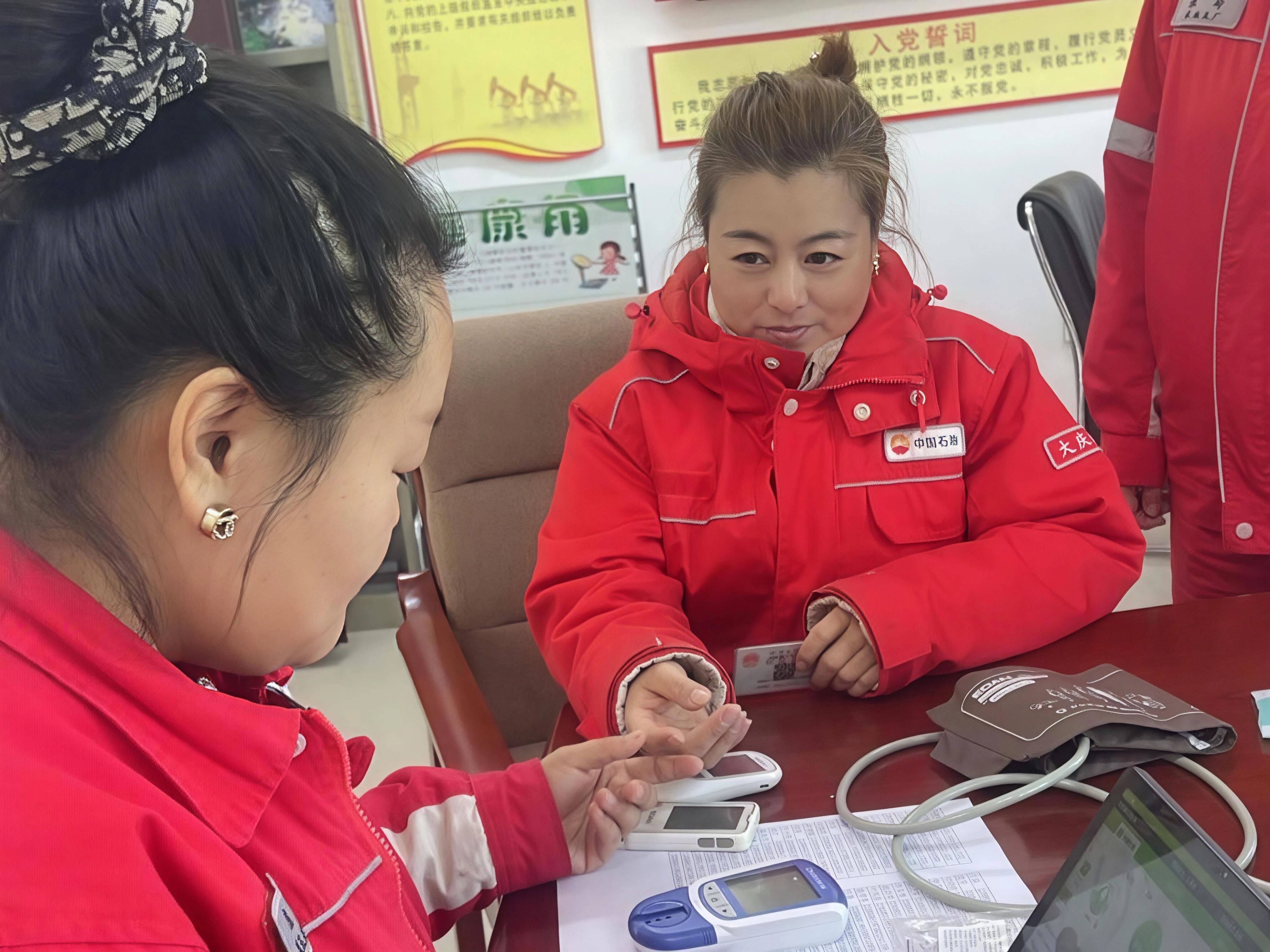 “血压控制得不错,平时还是要多注意低盐饮食,避免过度劳累。”近日,大庆油田采油五厂第四作业区注采401班的健康关爱活动现场,庞雪一边为员工记录检测数据,一边耐心叮嘱。