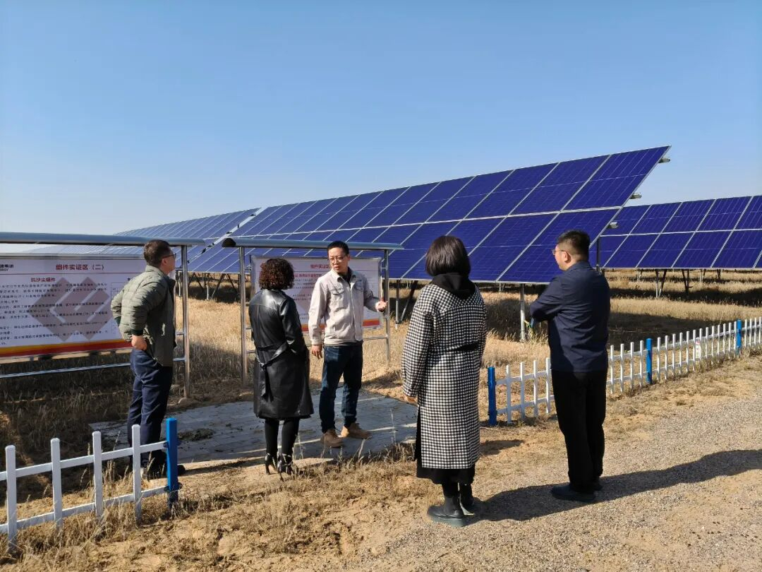 此次调研由中国能源研究会品牌分会副主任兼秘书长牟思南带队。国电电力综合能源内蒙古有限公司党建部主任张鑫、折盺薇,蓝海光伏电站站长李晋原及项目部核心团队成员热情接待了调研组一行,并就项目建设、技术创新、生态治理及品牌塑造等议题进行座谈交流。