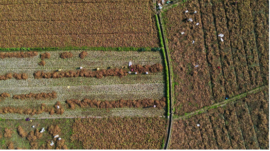 深冬的晨雾中,四川眉山彭山区谢家街道汉安村的泽泻田一望无际。田间地头,数十名采收工人正忙碌地挖掘成熟的泽泻果实,铁锹翻动间,一个个饱满的块茎破土而出,空气中弥漫着泥土与药材特有的清香。今年的采收季格外繁忙,满载泽泻的三轮车在田埂上来回穿梭,将丰收的喜悦传递到村庄的每个角落。