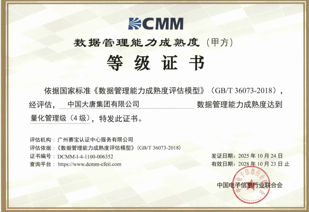 图4中国大唐集团总部DCMM4级证书