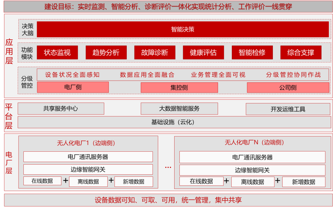 赋能生产可视化,通过高清摄像头数据、发电设备测点实时数据和巡检离线数据应用,高效贯穿电厂侧-集控侧-公司侧数据,结合云计算、物联网等技术手段,实现发电生产设备状态全面感知、业务管理全面可视、分级管控协同作战,实现无人化黑灯电厂,大大降低企业生产成本。如在贵州公司,实现真实意义上的“无人值班,少人值守,集控监控,运维管一体”运维管理。生产管理模式转型后实现人员数量减少,每年大幅降低人力资源成本。