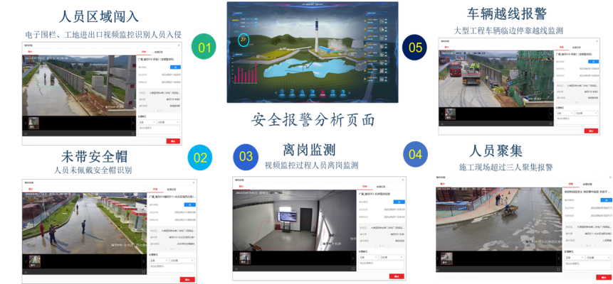 赋能智慧工地,通过视频、工程建设、仓储数据的多源异构数据实时采集与融合,提升数据准确性、及时性,运用三维可视化、AI识别分析、自动化控制等技术实现基建工程的安全管理、进度管理、物资管理,并实现工地实时危险预警和违规报警,大大提升工地安全管理能力。