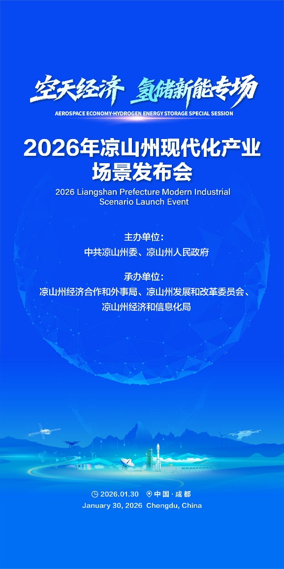从四川凉山彝族自治州经济合作和外事局获悉,1月30日,凉山2026年现代化产业场景发布会“空天经济·氢储新能”专场将在成都举办。