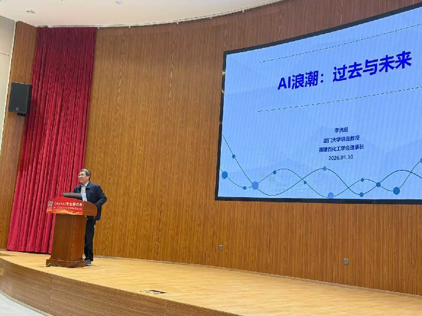 学术交流环节成为大会的亮点。集美大学原校长李清彪教授带来了题为《AI浪潮:过去和未来》的专题报告。他以宏大的历史视角和前瞻的行业洞察,为与会者深入剖析了人工智能技术的发展脉络与未来趋势,为专委会的工作开展提供了宝贵的理论参考和思想启迪。