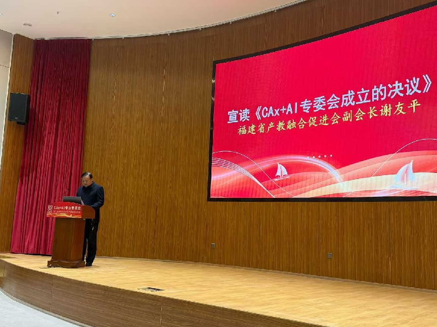 在授牌及聘任仪式上,福建省产教融合促进会副会长谢友平为新成立的CAx+AI专业委员会授牌,并对新当选的专委会主任颁发聘书,标志着专委会正式扬帆起航。