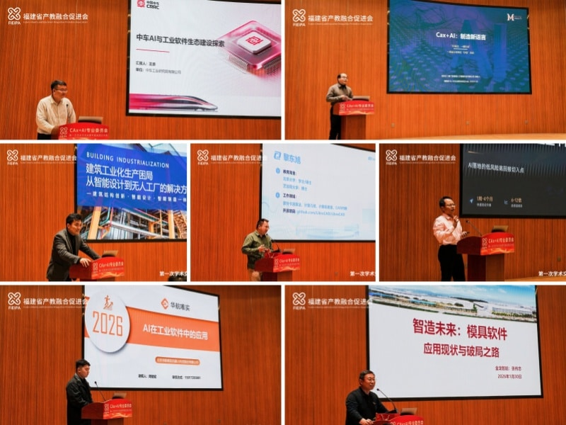 七位来自工业软件、人工智能及智能制造领域的专家学者和企业代表进行了分享。他们围绕工业软件生态建设、AI赋能设计语言革新、智能体应用、特定行业(如轨道交通、模具制造、建筑工业化)的智能化解决方案等方向,展示了CAx+AI技术在不同场景下的前沿探索与实践成果,为与会者提供了丰富的案例参考和创新思路。