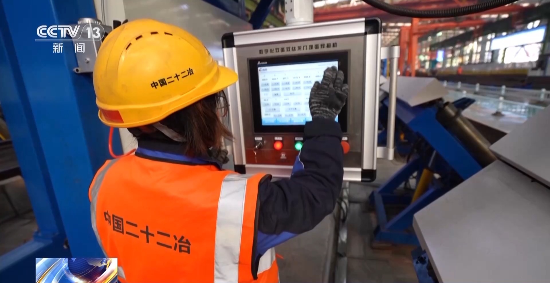 中国二十二冶集团金结分公司研究院副院长 刘泽鲲:前面的激光定位可以精确识别到我们焊缝的位置,它可以进行自动纠偏和校核。生产效率大概提高了三到五倍,我们整个产线它实际上只需要八个人就可以。