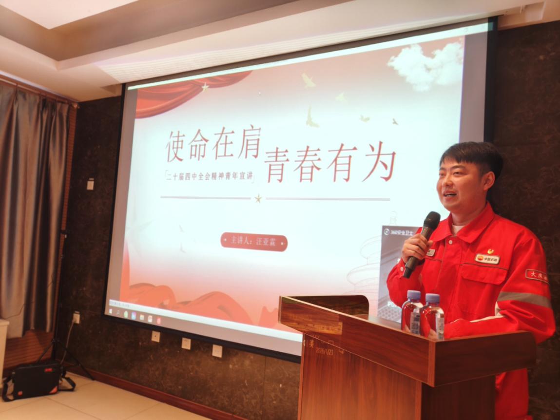 为深入学习宣传贯彻党的二十届四中全会精神,引导青年职工将个人成长融入企业发展与国家大局,1月23日,大庆油田采油五厂第六作业区团委组织开展了主题青年宣讲活动。作业区16名青年代表齐聚一堂,共同聆听宣讲、交流心得,凝聚思想共识,激发奋进力量。