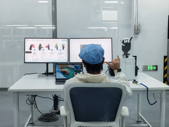 图为工作人员正在对灵巧手进行测试。张洋洋摄
