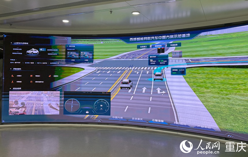 西部(重庆)科学城智能网联汽车实时监控屏幕。人民网记者胡虹摄