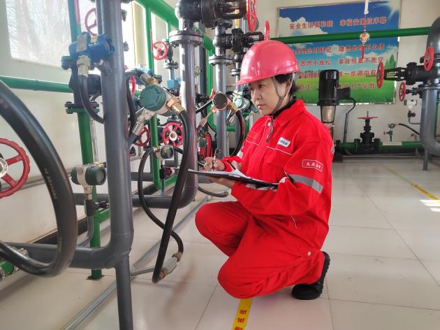 听着管线里逐渐增强的回液声,看着温度表上稳步回升的数字,李静静来回穿梭于计量间,脚步也变得轻快起来。她擦了擦额头的汗珠,那汗珠在寒冷的空气中瞬间凝结成了冰珠,但她却顾不上这些。她露出了会心的笑容,那笑容中充满了自豪和满足,仿佛所有的辛苦和疲惫都在这一刻烟消云散。她在巡检记录上郑重写下“温度恢复正常”,每一个字都写得刚劲有力,仿佛在书写着自己对工作的忠诚和热爱。寒冬里的这场“听诊”,正是用她一丝不苟的值守,牢牢护住了稳产保供的生命线。(王珊)