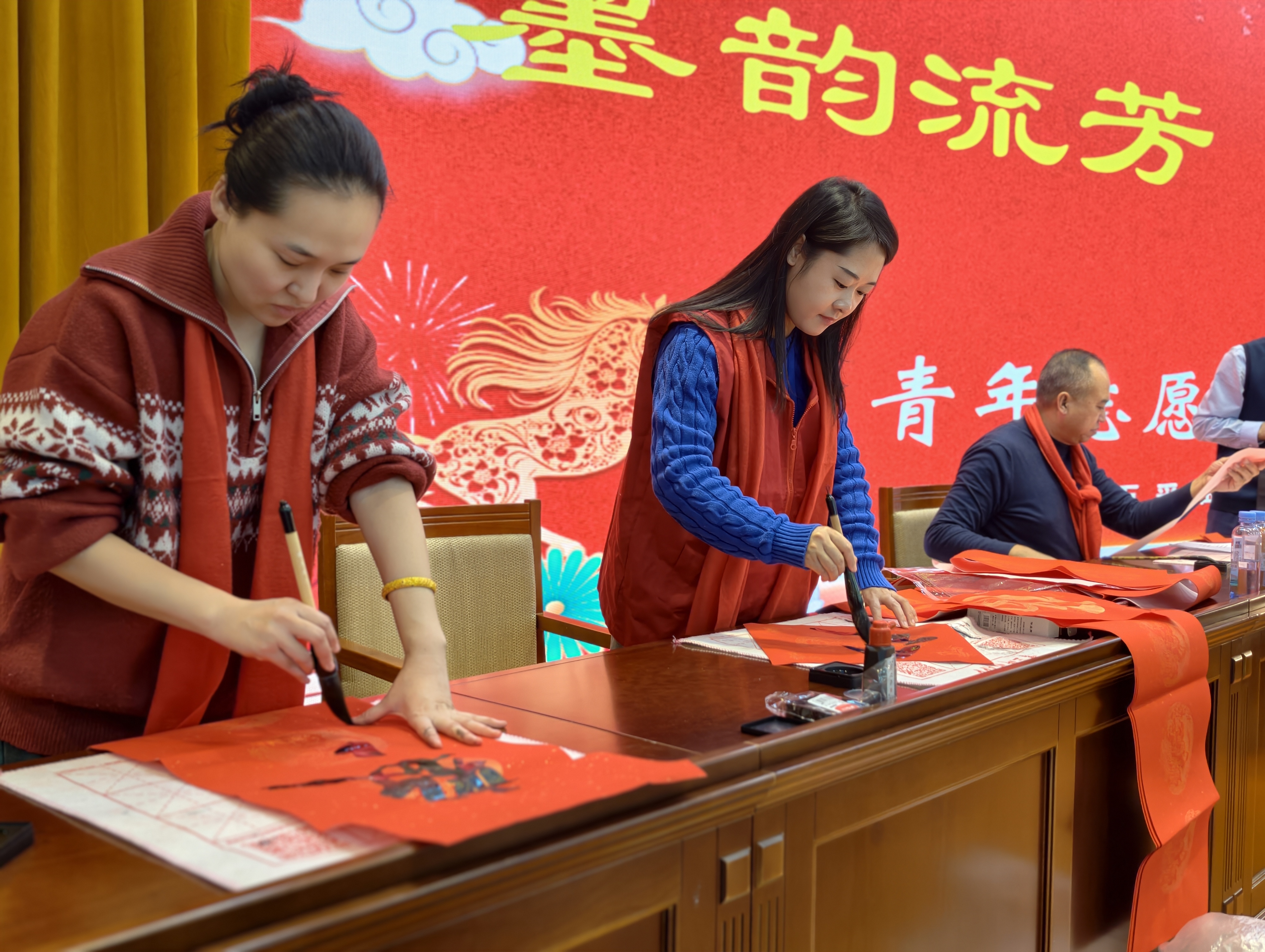 活动中,志愿者们相互交流书法技巧、分享创作心得,欢声笑语间增进了彼此情谊。大家不仅认真书写春联,还主动为现场其他同事讲解春联寓意,传递传统文化魅力。不少青年员工表示,此次活动既锻炼了书写能力,又感受到了传统文化的博大精深,更增强了作为企业一员的归属感和凝聚力。