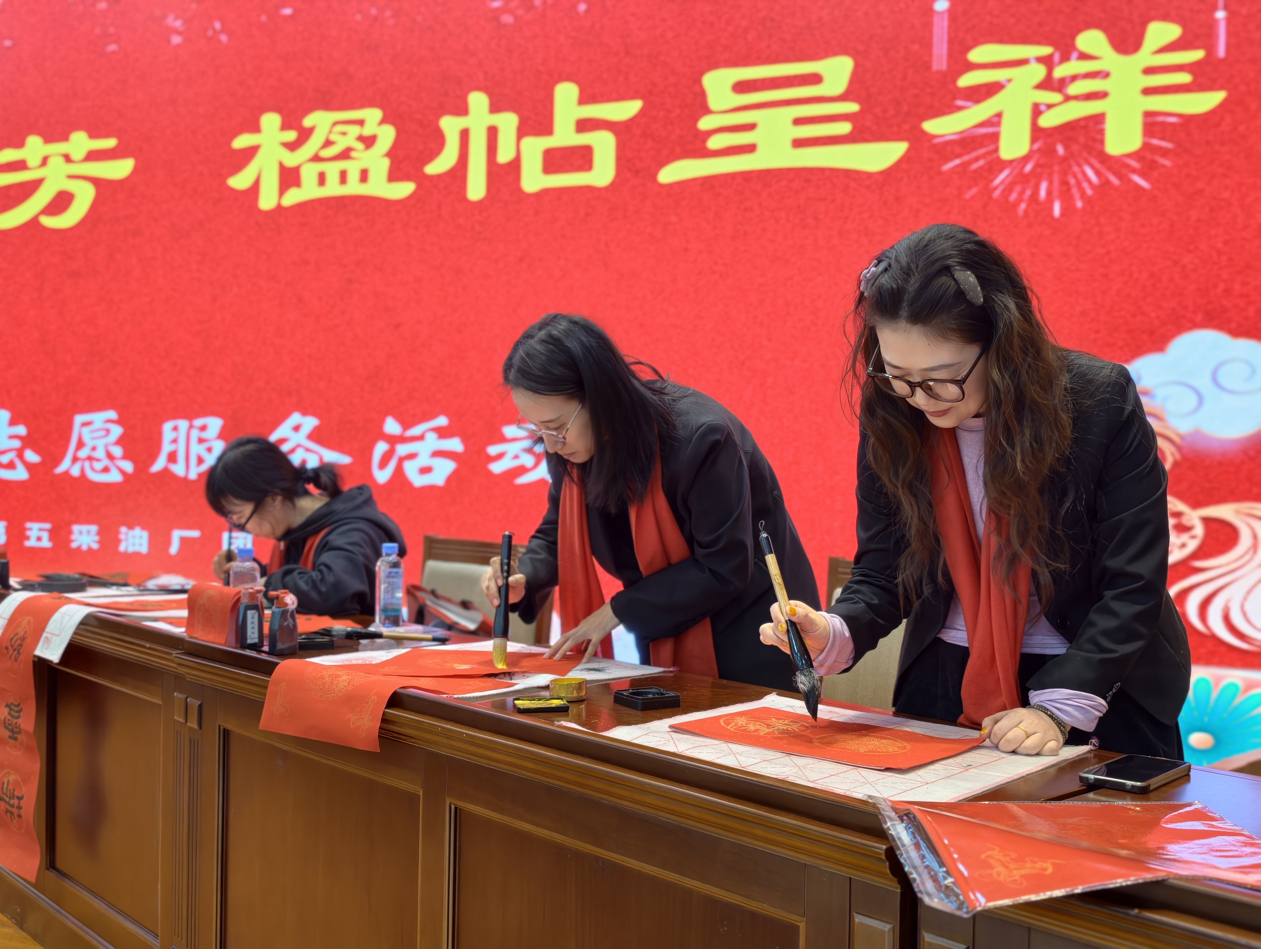 为深入弘扬中华优秀传统文化,营造喜庆祥和的新春氛围,凝聚全员奋进力量,2月5日,大庆油田采油五厂团委组织开展“迎新春、写春联、送祝福”主题活动,第三作业区积极响应、踊跃参与,组织青年骨干与书法爱好者齐聚活动现场,以笔墨寄深情,以春联话初心。
