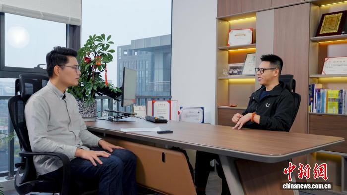 上海青年创业者王君(右)接受中新网专访。 钟欣摄