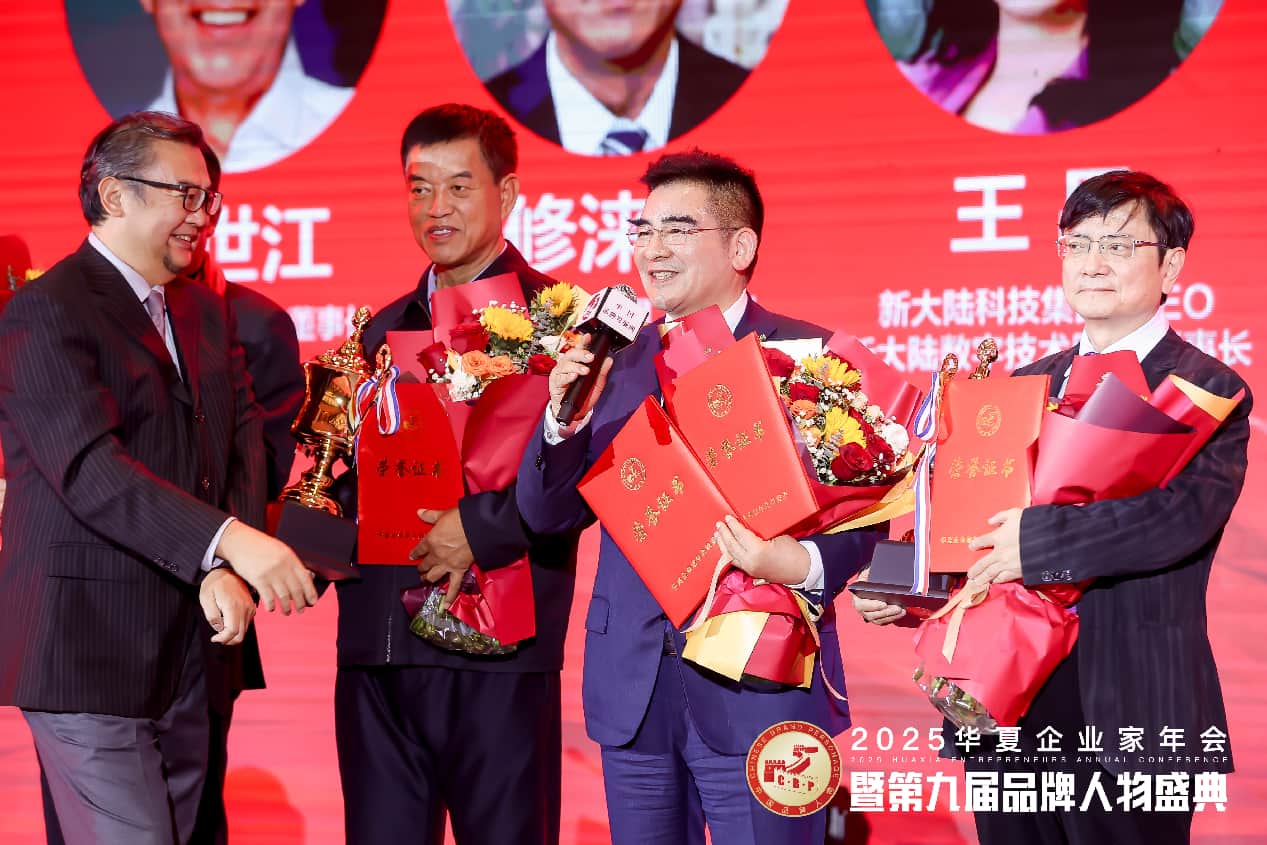 当前,民营经济作为高质量发展的重要基础、推进中国式现代化的生力军,正迎来广阔发展前景与全新机遇。中央经济工作会议明确要求完善民营经济促进法配套法规政策,为民营经济高质量发展筑牢根基、指明方向。历经数载沉淀,华夏企业家年会已成为凝聚企业家共识、对接优质资源的重要载体,品牌人物盛典更是发掘和表彰优秀品牌人物的权威舞台。大会现场举行了第九届中国品牌年度人物荣誉加冕仪式,多氟多集团党委书记、董事长李世江,修正药业集团股份有限公司董事长修涞贵,全国政协委员、新大陆科技集团CEO王晶,知名学者、浙江大学求是特聘教授郑强,深圳市航盛电子股份有限公司董事长杨洪,淮海控股集团党委书记、董事长安继文,江苏黄埔再生资源利用有限公司董事长陈光标,攀华集团有限公司董事长李兴华,金木集团有限公司董事长钮立卫荣膺2025中国品牌年度人物荣誉(按年龄排序)。