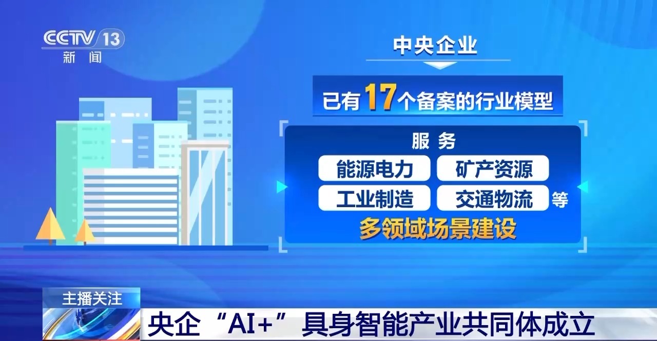 记者11日从国务院国资委获悉,央企“AI+”具身智能产业共同体成立。国务院国资委相关负责人表示,近年来,国务院国资委全力推进中央企业“AI+”专项行动,智能算力供给能力持续提升、自主可控模型构建加速突破,人工智能产业发展取得明显成效。