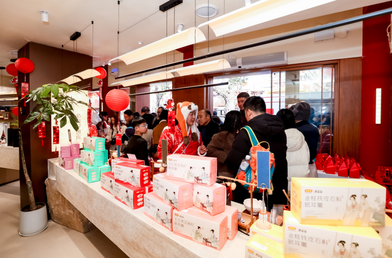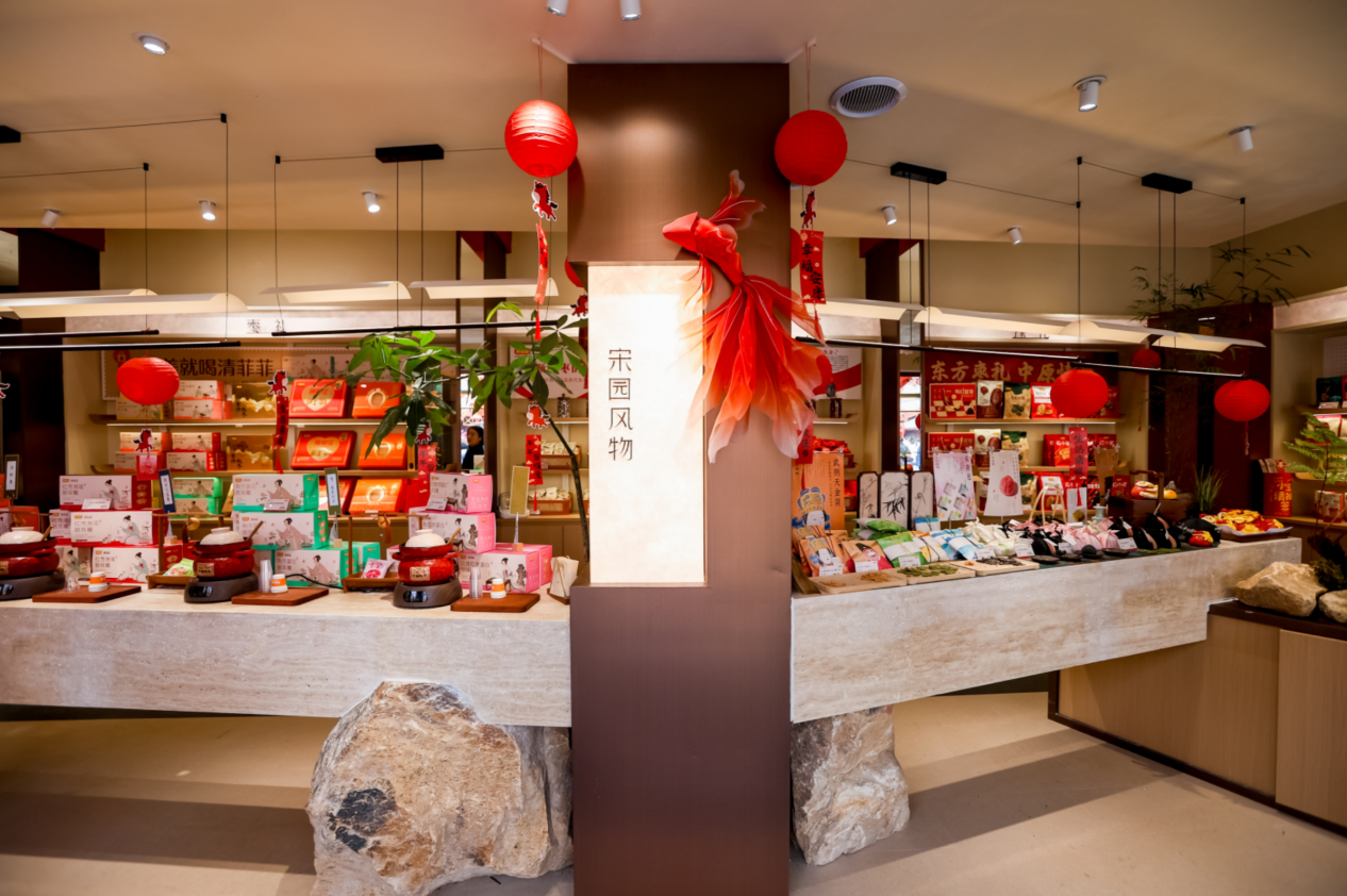 开业盛典以宋式雅礼为核心脉络,精心打造了沉浸式文化体验盛宴。从嘉宾入场时的“入画・录名”,到开市时的“三扣门”之礼,再到“垒禧・成山”等特色环节,步步紧扣宋风古韵与枣礼文化,让到场嘉宾和游客仿佛穿越时空,置身于千年前的繁华汴京。这种将文化元素深度融入开业活动的做法,不仅增强了活动的趣味性和吸引力,更让消费者在体验中感受到了品牌所承载的文化内涵。门店内部同样深度融入清明上河园的文化底蕴,打造“百喜工坊”专属文创空间,将“王员外招亲”等喜庆佳话融入店内场景,实现了从“卖货”到“贩售文化体验”的转变,为游客提供了“可带走的在地文化记忆”。这种以文化赋能商业场景的模式,为国货品牌在文旅融合中如何吸引消费者、提升品牌价值提供了有益借鉴。