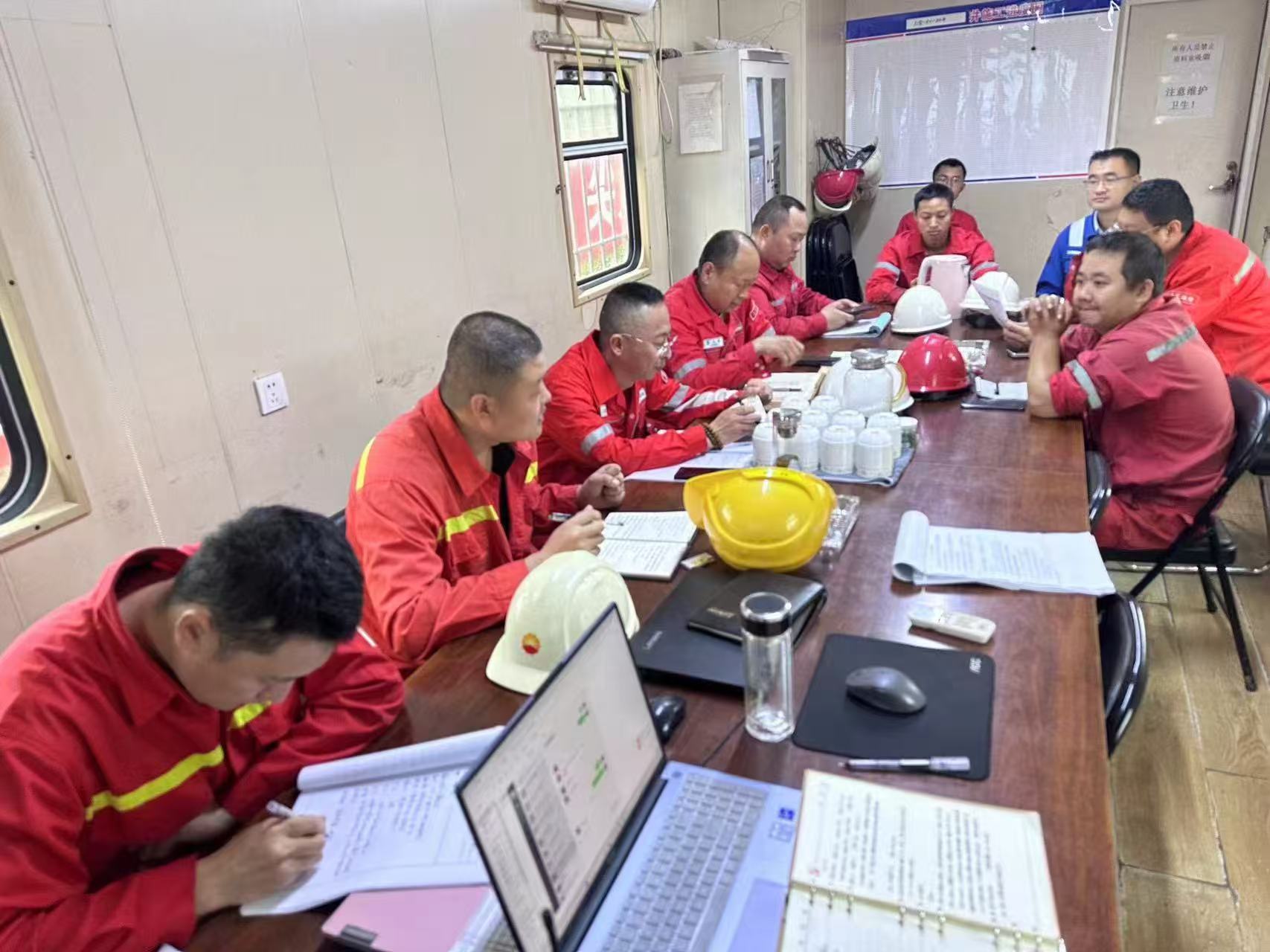 “不能坐在办公室里指挥钻井!”团队将指挥部前移至井场,白天跟踪工序堵点,夜晚复盘优化,主动与甲方建立联合推进机制,变“被动应对”为“主动谋划”。针对搬迁、中完等关键环节,创新构建“统一指挥、统一协调、统一调度”的高效体系,打通项目部、前指、钻井队三级联动链路,使作业效率整体提升20%以上。70263钻井队更以此连续创下区块快速搬迁和中完作业最短周期纪录。