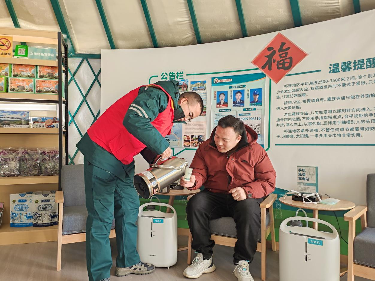 “这大冷天的,没想到荒郊野岭还有这么个‘家’!”李师傅搓着手感慨。驿站里,暖气充足,热水、充电插座、吸氧设备一应俱全。马杰帮他们泡好碗面,又给其中一位稍有高原反应的司机接上了氧气管。“镇上买不到吃的,能在这儿吃口热乎的,就跟提前吃了顿年夜饭一样!”捧着热气腾腾的面碗,李师傅脸上冻出的红皴渐渐化开,笑意从眼角漾了出来。