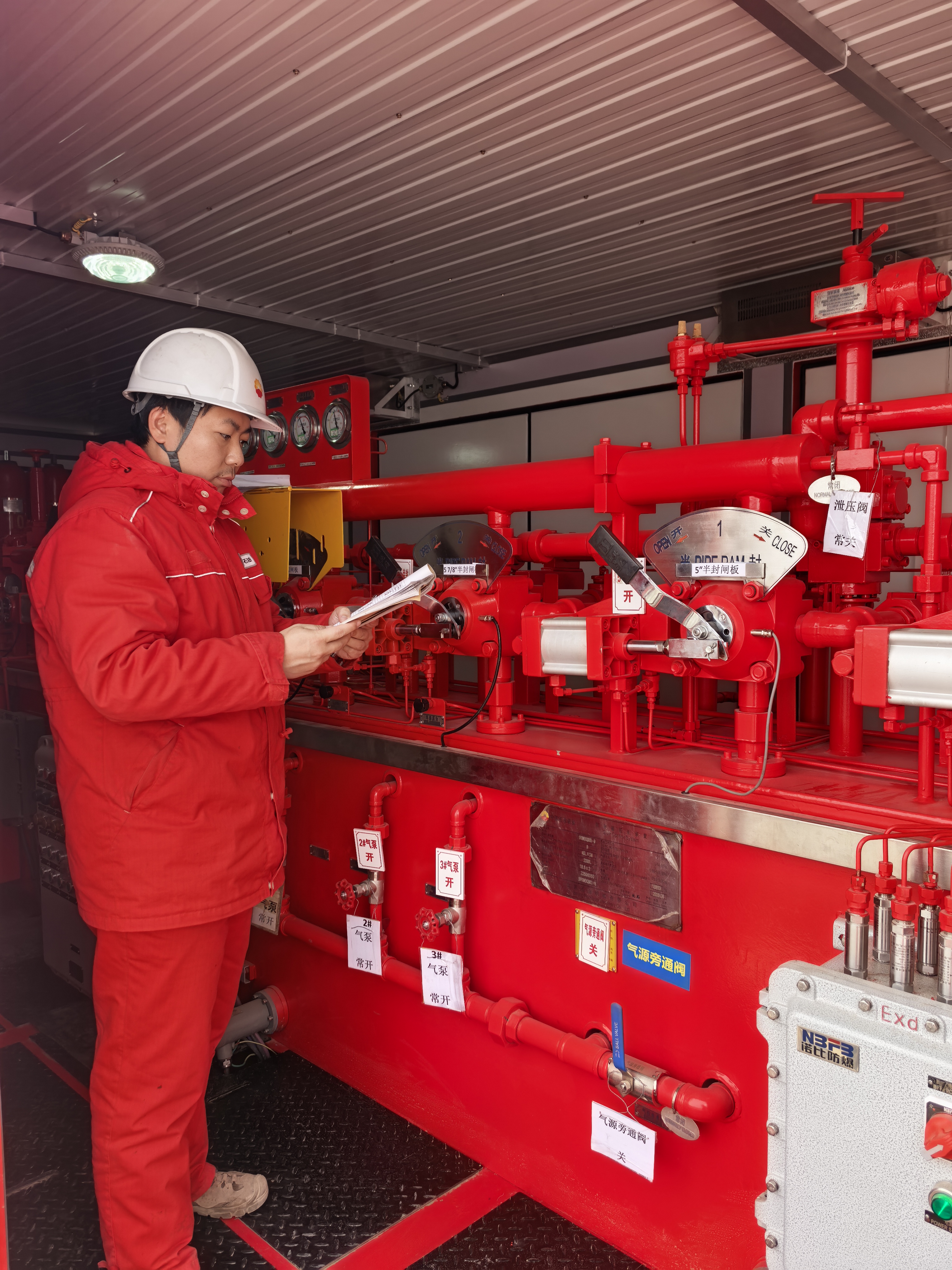 就在几天前,甲方安全管理标准升级。井深已接近七千米,任何细微疏忽都可能酿成大祸。在队里,李成刚年龄不大,但责任心强,他主动揽下了迎检攻坚的担子。从井控装置到数据台账,他逐一过筛,白天泡在现场,夜里对着规范条文逐字啃。沙漠的夜,零下二十多度,手冻僵了就搓一搓,脚麻了就跺一跺,耳朵通红刺痛,笔记却密密麻麻。
