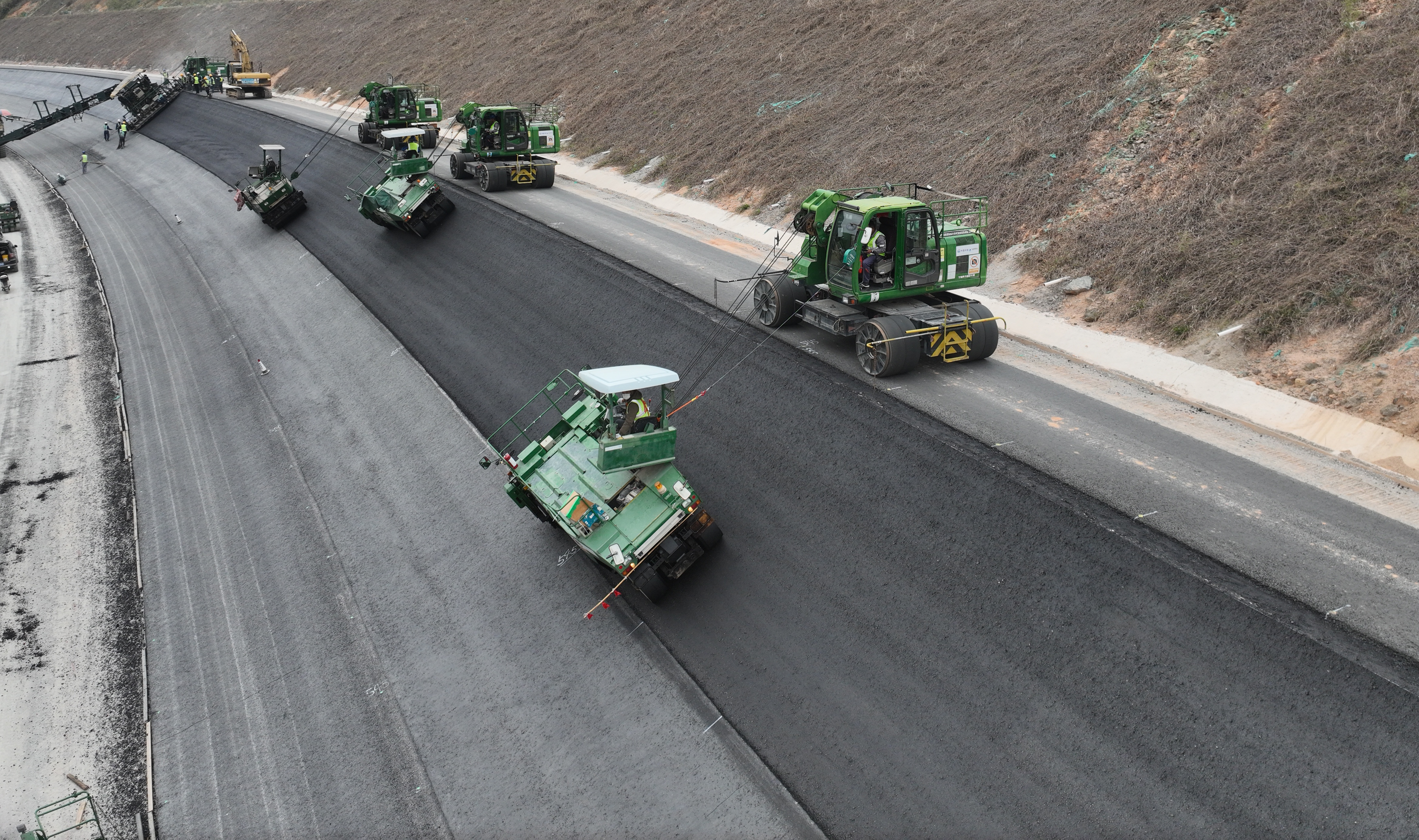 笔者走进南方(韶关)智能网联新能源汽车试验检测中心项目现场,蜿蜒的沥青路面在群山间划出优美的弧线,施工车辆往来穿梭。
