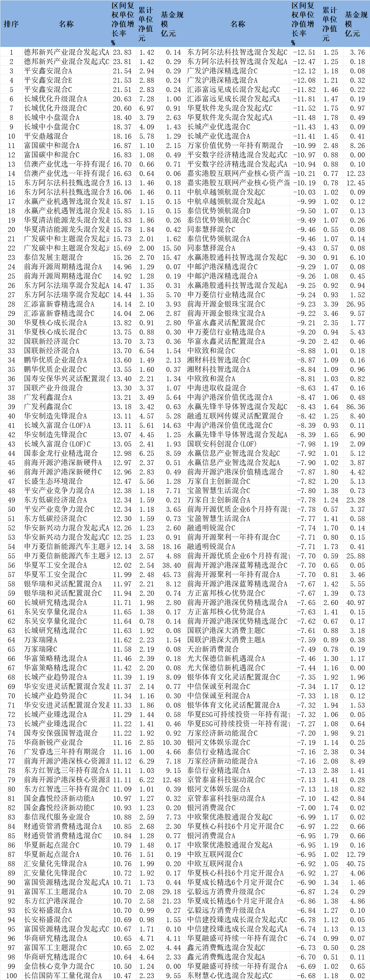 2026年2月份混合型基金涨跌幅前100名