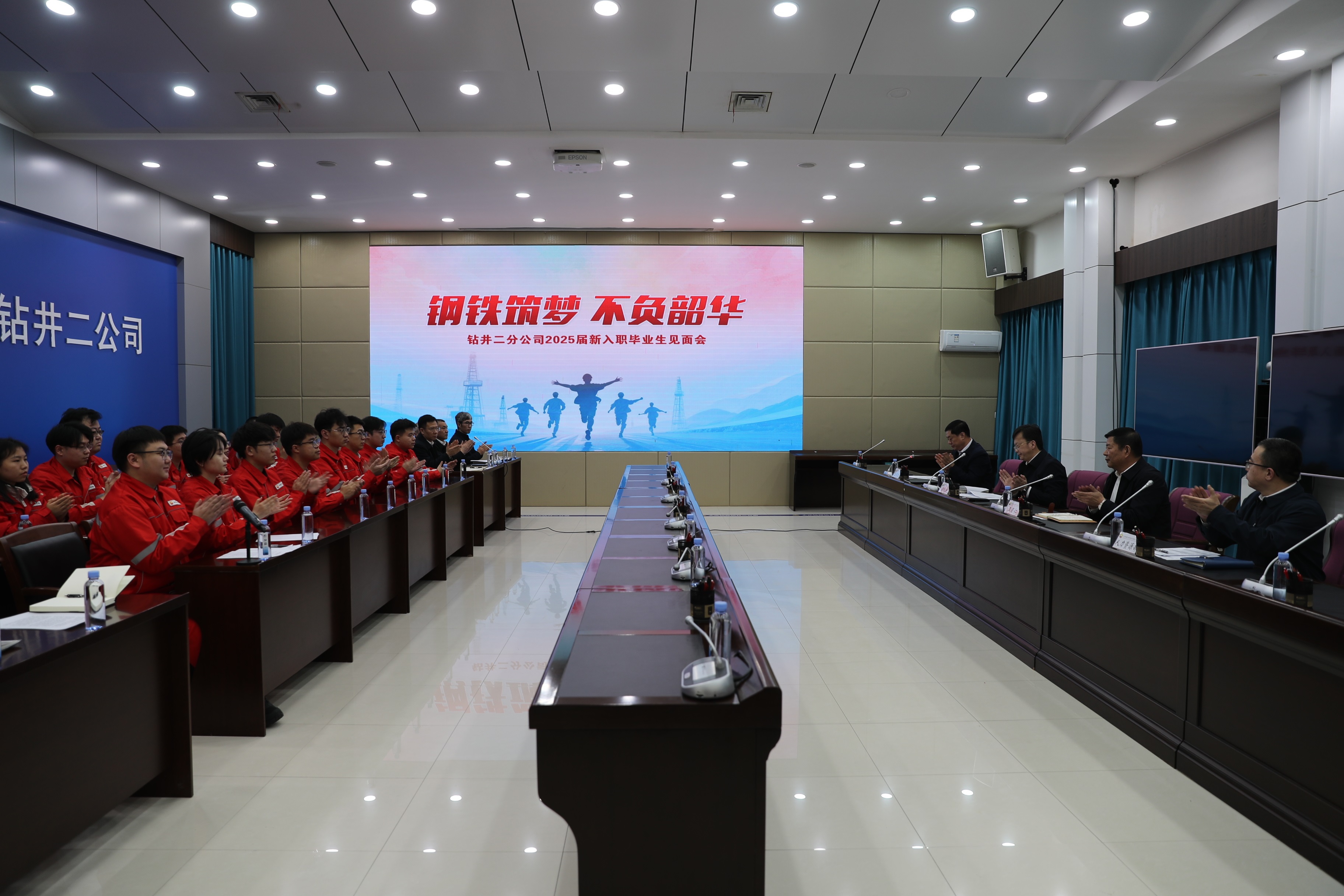 春回大地,万物竞发。为欢迎新入职毕业生加入钻井二分公司大家庭,帮助青年员工快速了解企业、转变角色、融入团队,2026年2月28日下午,钻井二分公司在四楼大屏幕会议室隆重举行2025届新入职毕业生见面会。会议由公司副经理苗景龙主持,公司主要领导、主管领导、人力资源部主任、副主任,部分中心、钻井队正职与全体新入职毕业生齐聚一堂,共话成长、共启新程。