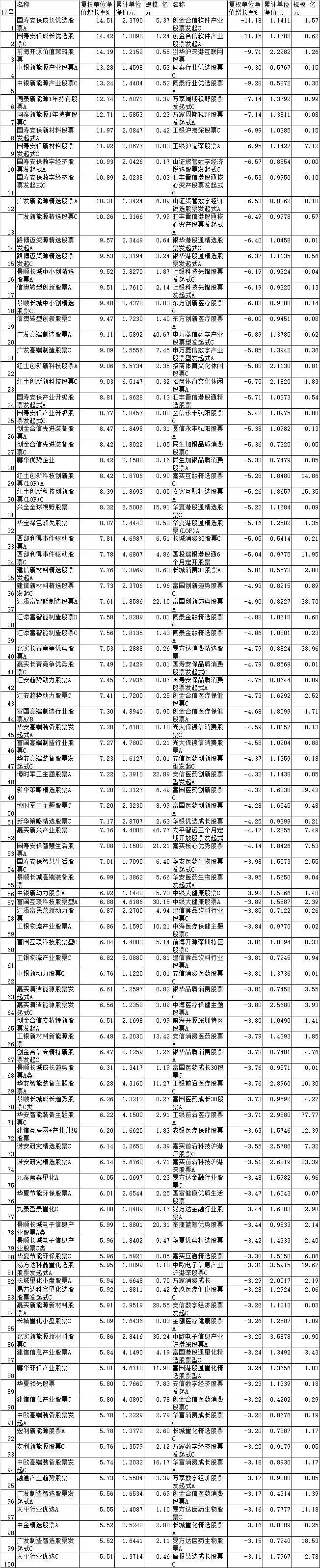 2026年2月份普通股票型基金涨跌幅前100名