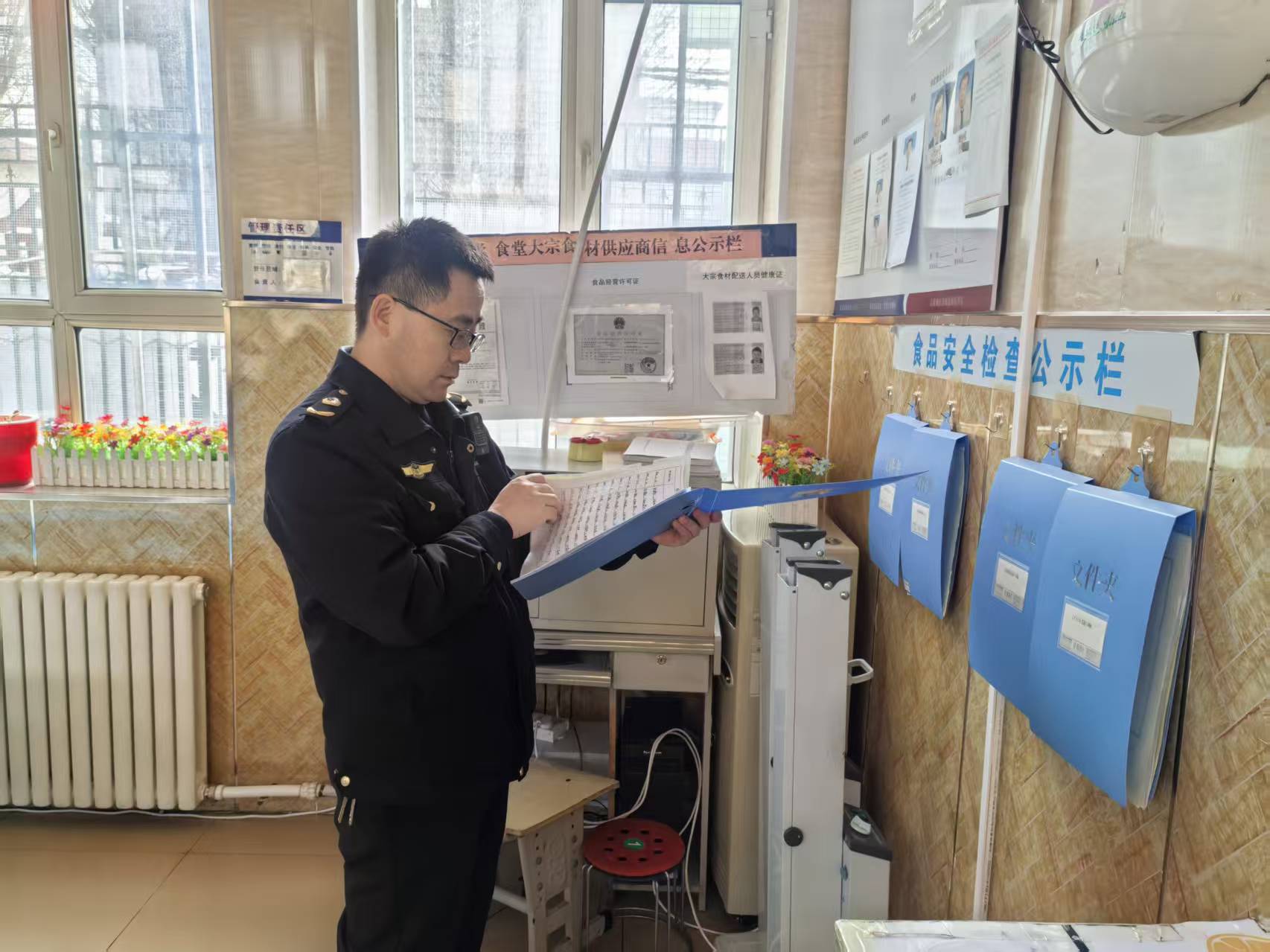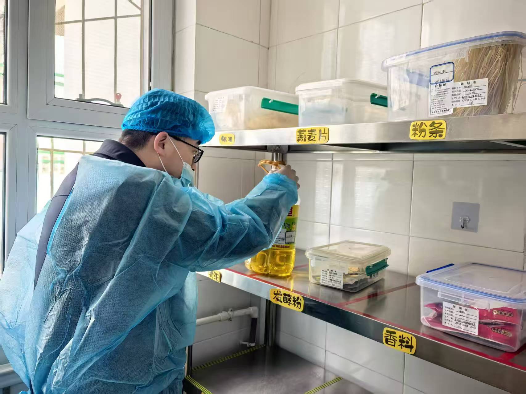 聚焦源头管控,严把校园食堂“准入关”。执法人员深入学校食堂后厨、食材库房、操作间等重点区域,围绕食品原料采购、储存保管、加工制作、餐具消毒、食品留样等关键环节开展全面排查。严格核查米、面、油、肉、蛋、奶等大宗食材进货查验、索证索票制度落实情况,确保食材来源可溯、资质齐全、质量安全;细致检查冷藏冷冻、仓储保洁等设施运行状态,严防过期、变质、霉变食材流入餐桌;规范加工操作流程,强化生熟分开、烧熟煮透、餐具清洗消毒等要求,全面压实食堂食品安全主体责任;逐一核查从业人员健康证明,督促落实晨检制度,坚决杜绝带病上岗,从源头守住校园食品安全第一道关口。