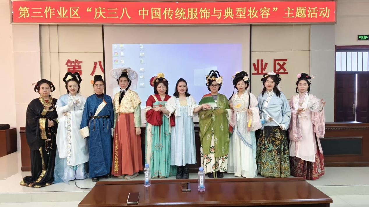 在“三八”国际妇女节来临之际,作业区计生委精心策划开展“中国传统服饰与典型妆容”主题体验活动,为一线女工送上一场兼具文化韵味与暖心关怀的节日盛宴,这也是作业区丰富女工精神文化生活、做实女工关爱工作的生动实践。活动现场朱墙映景、花香萦绕,平日里坚守在采油一线的女工们卸下工作的忙碌,身着襦裙、旗袍等传统华服,在专业老师的指导下学习传统服饰穿搭礼仪,打造点绛唇、描黛眉的雅致国风妆容。衣袂翩跹间,女工们或轻倚红墙、或漫步花间,一颦一笑尽显东方女性的温婉灵动,在沉浸式的文化体验中,感受中华优秀传统文化的深厚底蕴,更在彼此的交流互动中增进情谊、舒缓身心。