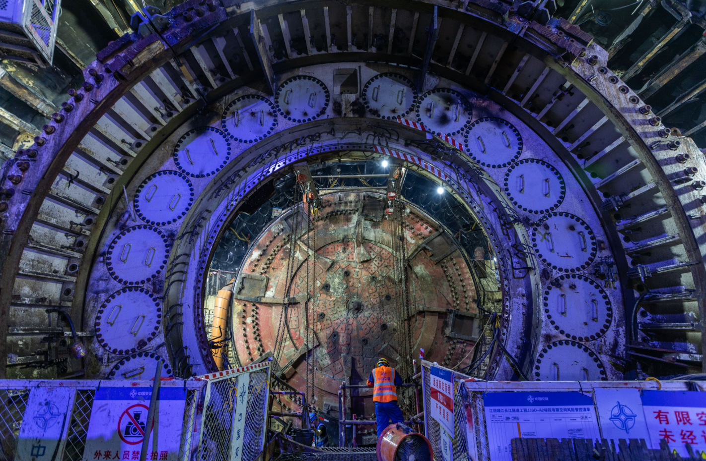 施工环节来到了后期最为关键的一步——拆解并运出盾构机。“此前单个盾构机作业完成后,可直接从地面拆解并吊装运走,但现在我们面临的是‘两头堵’难题。”梁玉强介绍,两台盾构机互相堵住了对方的去路,将它们运出江底成为最后的挑战。