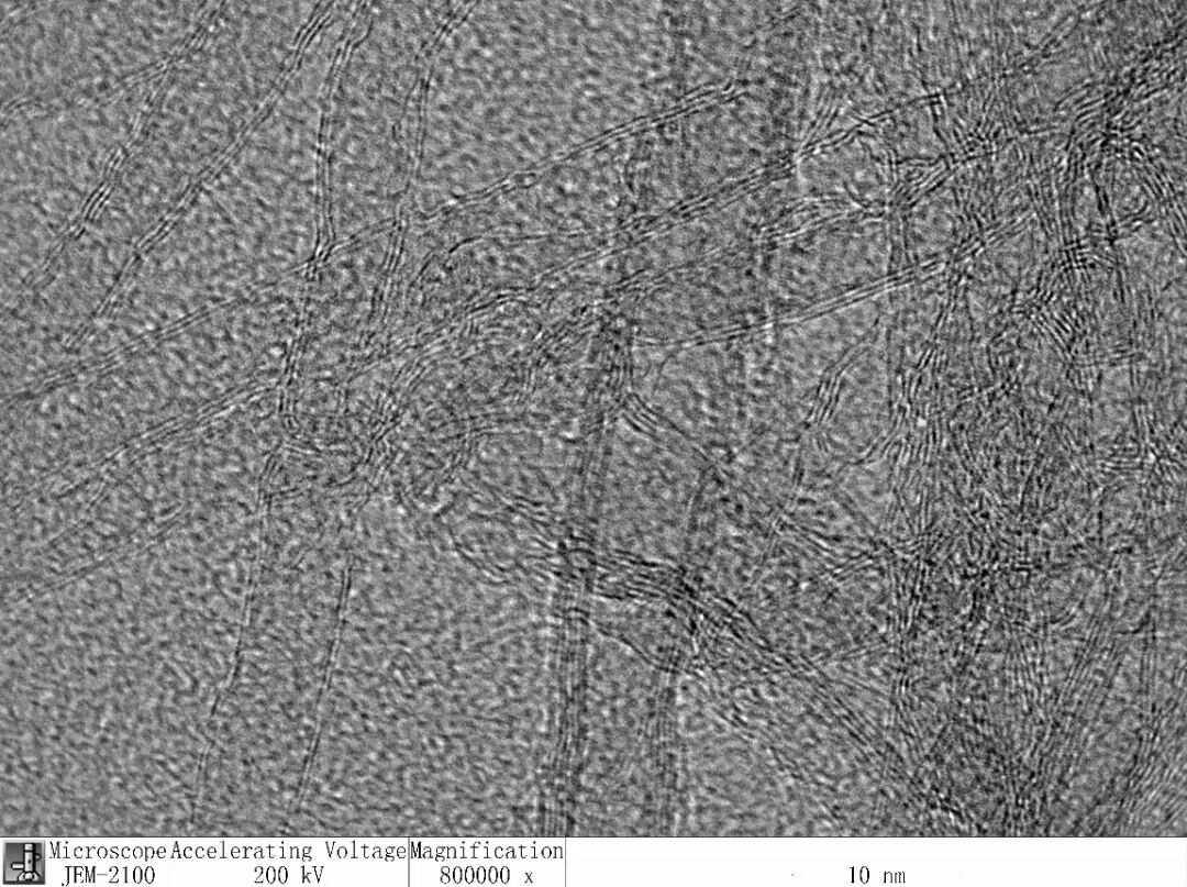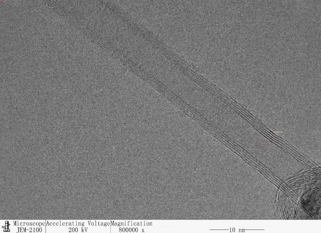 (图2,2、3、4层寡壁碳纳米管并存的高倍透射电镜照片,数据来源:赢纳材料)