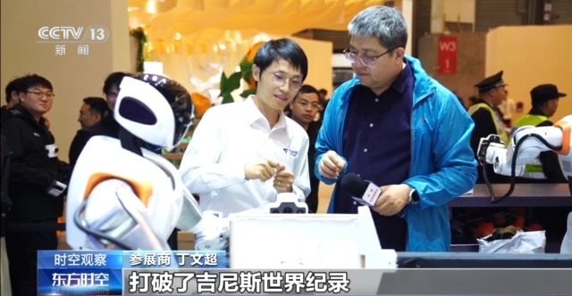 参展商丁文超:在一小时内完成了105根线以上的精密装配,打破了吉尼斯世界纪录。背后逻辑是,我们(数据)采集的主体是人,不是像传统的去遥控机器人采集,通过一个大模型吸收了这些数据之后,可以灵活地把它迁移到机器人,让机器人也拥有这个能力。