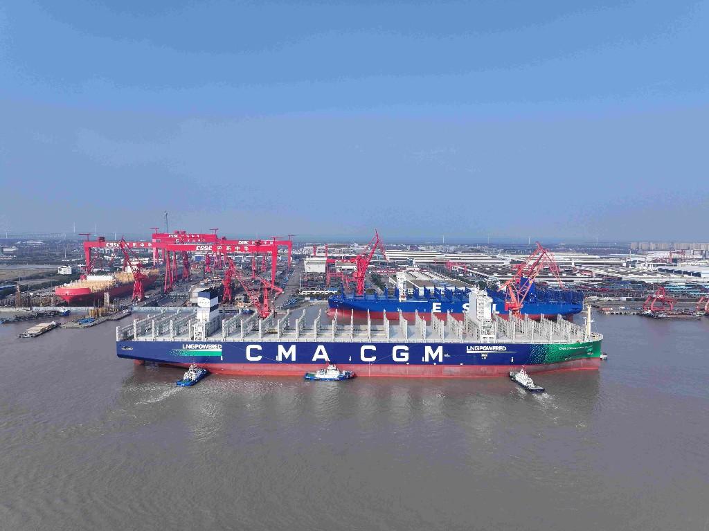 3月17日,由中船集团旗下沪东中华造船(集团)有限公司建造的全球最大24000TEU级液化天然气(LNG)双燃料动力集装箱船“达飞巴黎大皇宫”号,提前7个半月在上海长兴岛命名交付。这是沪东中华为法国达飞集团建造的第20艘大型集装箱船,为中法两国在绿色航运与高端制造领域的深度合作增添新的典范。
