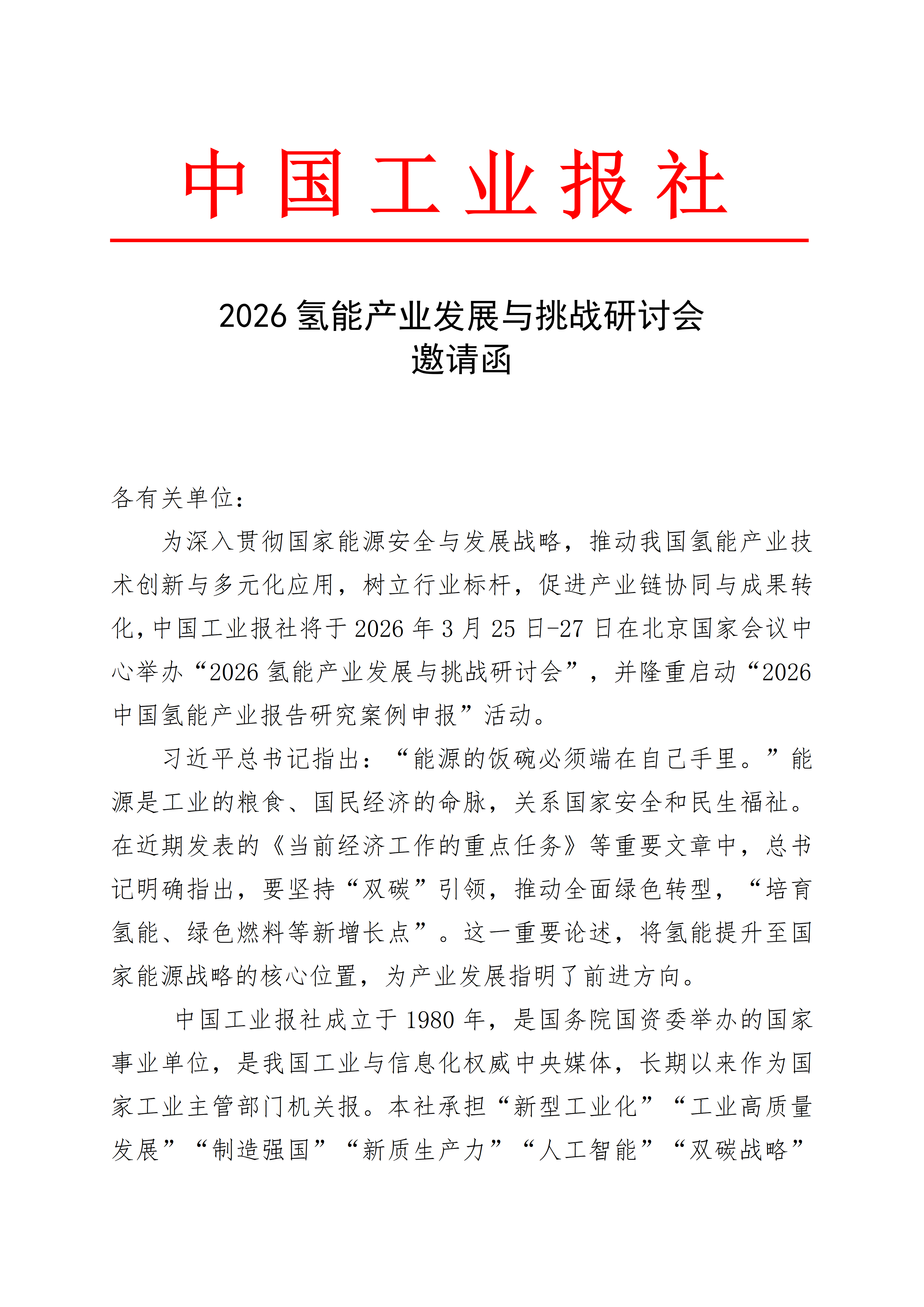 2026氢能产业发展与挑战研讨会邀请函