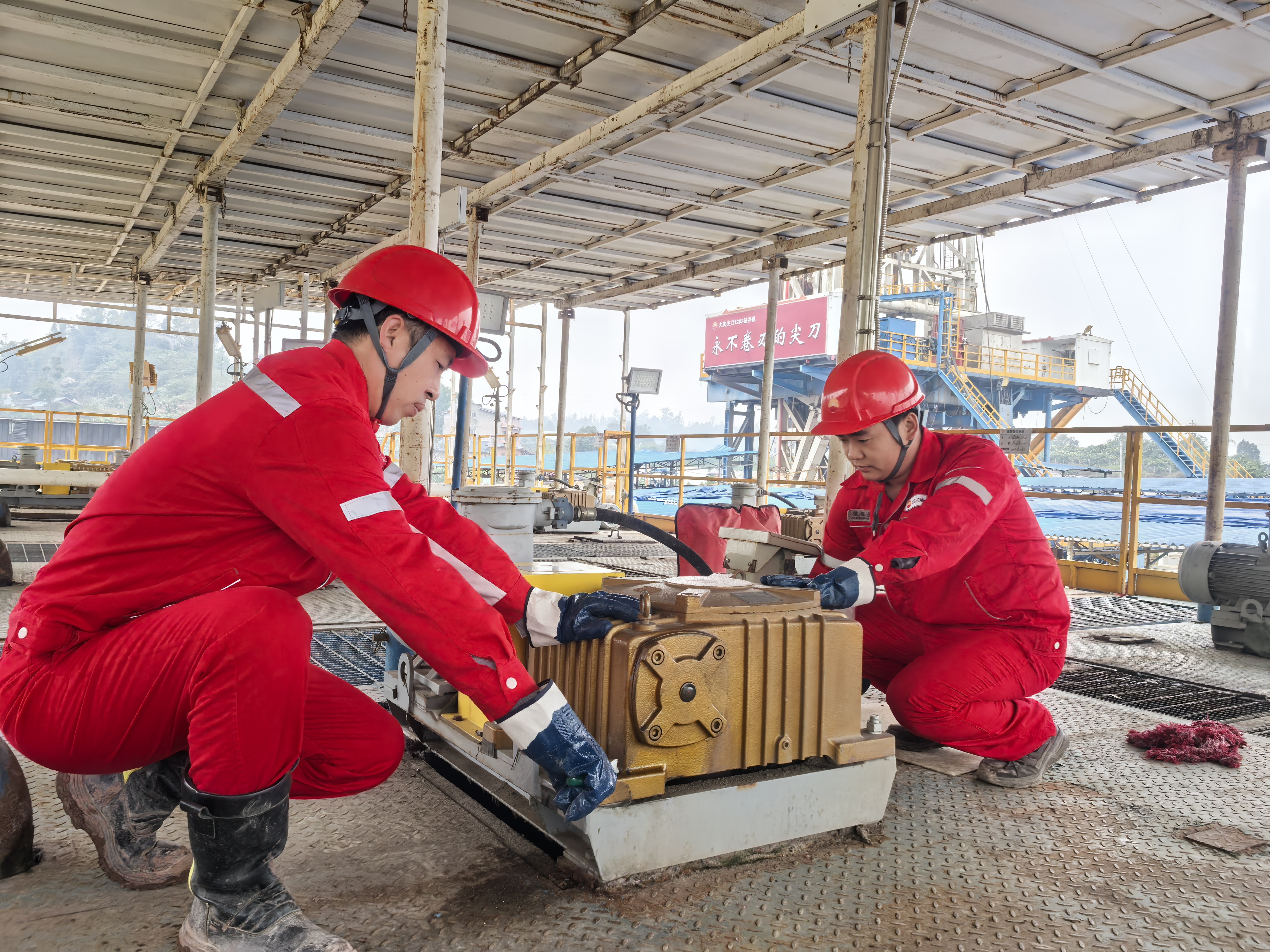 实干创实绩,严管保高效。为确保施工质量与效率双提升,队伍以“三个强化”筑牢施工根基:强化过程管控,实时监测38项关键指标,依据返砂量灵活调整钻压转速,让钻头始终保持高效破岩状态;强化设备管理,严格执行“预防性维护+周期性保养”,保障关键设备全程最佳运行;强化措施执行,技术骨干靠前指挥,通过每日碰头会、班前班后会实现技术交底、指令细化、措施优化的闭环管理。同时,推行干部24小时轮班值守,各岗位各负其责、协同作战,工程师盯紧参数、机械大班守牢设备、钻井液大班稳控性能,全方位保障钻井作业安全平稳。