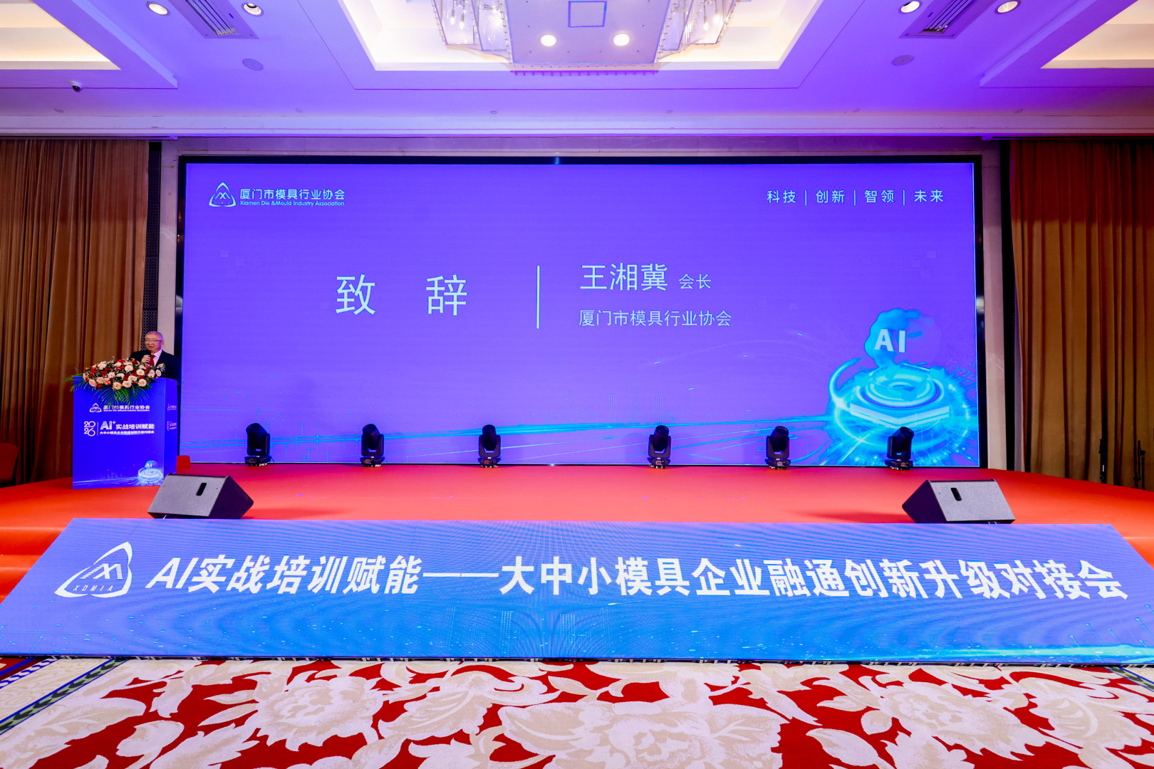 日前,由厦门市工业和信息化局指导,厦门市模具行业协会主办的“AI实战培训赋能—大中小模具企业融通创新升级对接会”在厦门悦华酒店华庭厅成功举办。活动汇聚200余家模具企业、技术服务商、金融机构及高校院所代表,以AI实战应用为核心,推动大中小企业融通协同、创新升级,现场交流热烈、签约不断。厦门市工业和信息化局企业处干部张晨,中国模具工业协会常务副会长兼秘书长秦珂女士莅临指导,福建省模具行业协会、漳州市模具联合会、泉州市模具行业协会、晋江市安海模具工业协会和厦门市设计创新协会等兄弟协会领导莅临观摩交流。