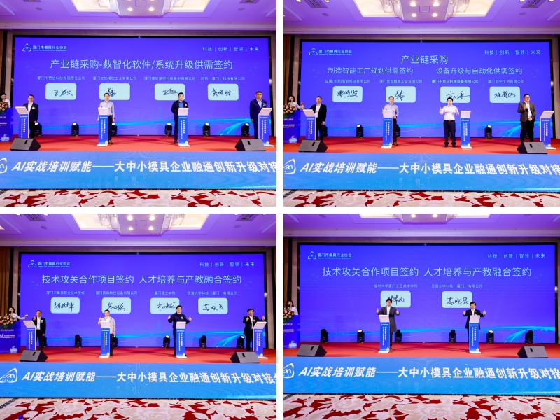 本次对接会以AI实战赋能为核心,以融通创新升级为目标,集主题分享、方案发布、签约合作、洽谈对接于一体,切实解决模具企业在数智化转型中的技术、设备、管理、资金、人才等痛点难点。下一步,厦门市模具行业协会将持续发挥桥梁纽带作用,常态化搭建交流对接平台,推动AI技术、智能制造资源与产业深度融合,助力大中小模具企业协同创新、提质增效,为厦门模具产业迈向高端化、智能化、绿色化注入强劲动力。(金正气)