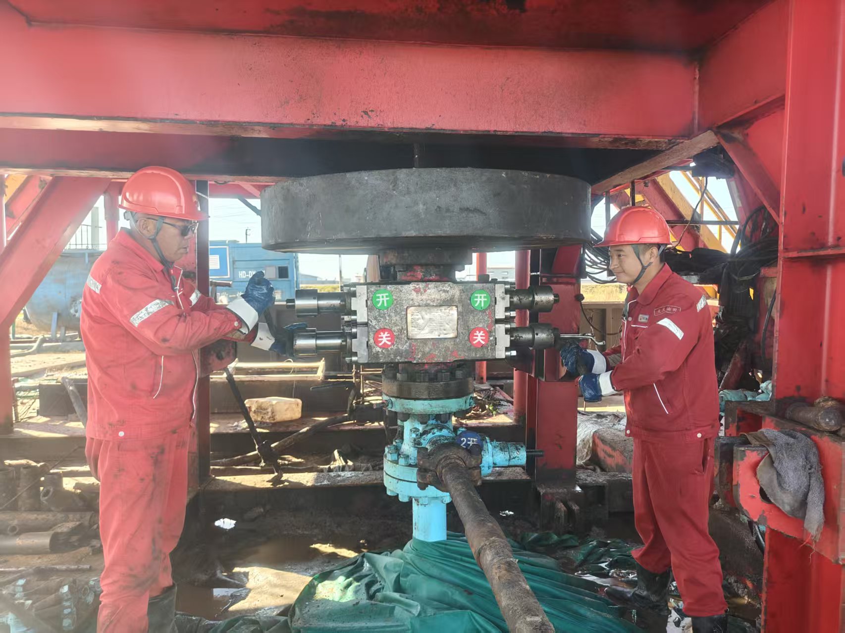 技术攻坚是队伍成长的试金石。在面对一口复杂的打捞井的施工任务时,井内卡阻的长胶筒封隔器因中心管拔脱,常规打捞工具根本无法发挥作用。难题当前,队班子带领技术骨干第一时间扎进库房,将报废同类封隔器彻底拆解,围着零件蹲地研究,量尺寸、画草图,图纸上密密麻麻标注着各类数据。从正午到深夜,大家集思广益、反复论证,最终敲定加长滑块的改造方案,让工具精准卡在封隔器接头处完成打捞。工具改制完成后,他们没有急于下井施工,而是在地面反复模拟三次打捞流程,两次调整限位高度,确保每一个操作环节都精准无误。正式施工时,钻杆平稳入井,遇阻试提、负荷上涨,一次打捞成功,施工时长较预计缩短8小时,用过硬技术攻克了生产难题。