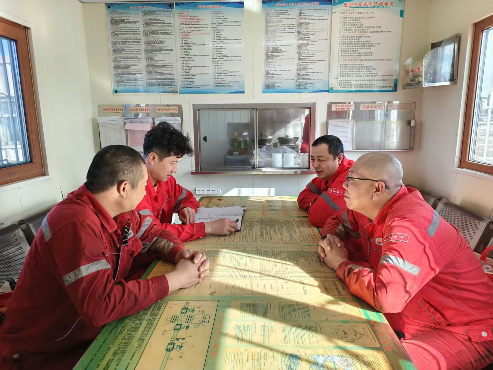 回望队伍组建之初,21名干部员工带着不同的工作习惯、各异的工作思路,齐聚同一片井场。面对人员磨合、经验不足等难题,破局之路必先从“心”出发。队班子成员连夜召开专题会议,敲定“明规矩、建信任、共实战”的三步走策略,下定决心将分散的“个体”拧成紧密的“整体”。在首次员工大会上,安全环保零事故、施工质量零返工、保供任务零延误的三大目标,成为全体成员共同坚守的初心与承诺。队长邓国奇话语铿锵:“我们绝不搞空喊口号,要让每一位员工都指导‘干什么、怎么干、干不好怎么办’,把责任扛在肩上,把标准落在实处。”
