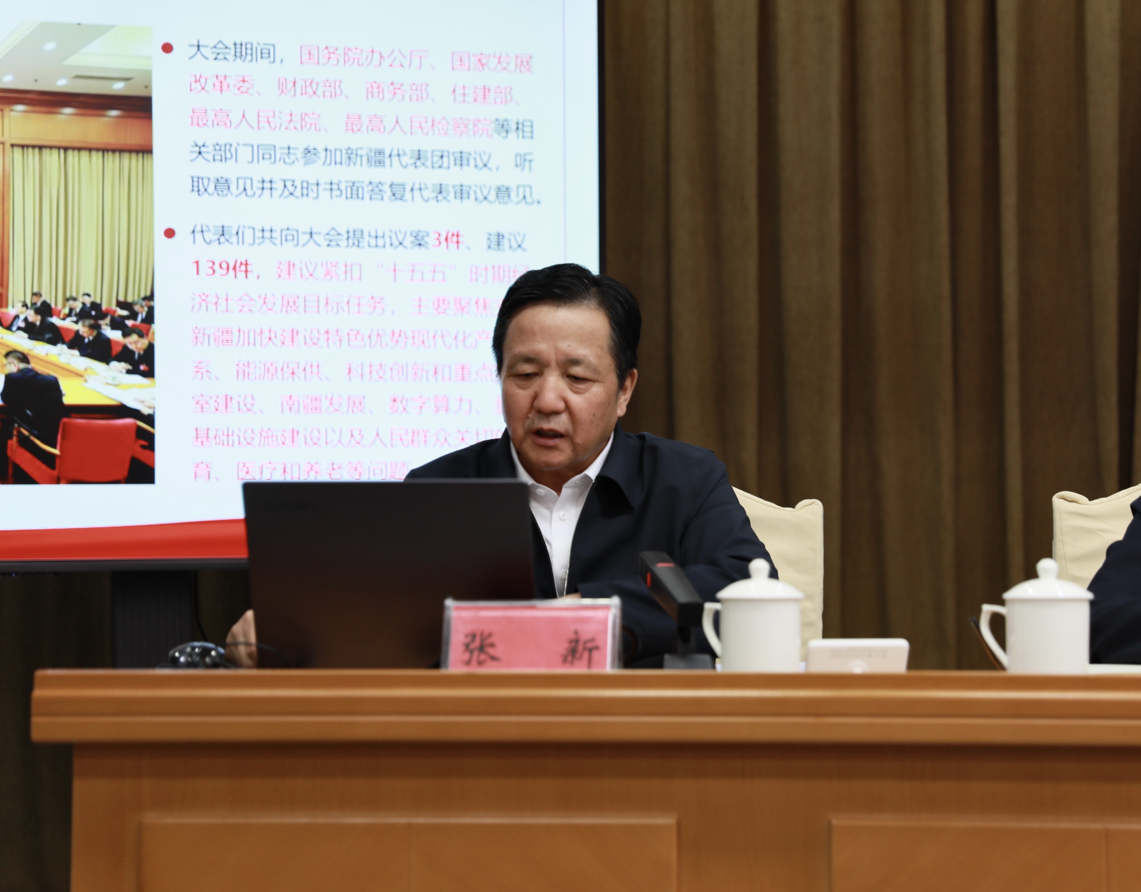 3月16日,昌吉州召开传达贯彻全国两会精神会议,全国人大代表、特变电工股份有限公司党委书记、董事长张新应邀,向昌吉州党政干部、企事业单位负责人宣讲全国两会精神,重点解读习近平总书记在全国两会期间的重要讲话精神,分享参会履职成果。