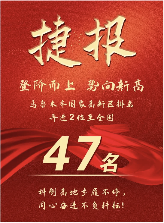 日前,工业和信息化部公布2025年国家高新区评价结果,在全国178家国家级高新区中,乌鲁木齐高新区(新市区)位列第47位,较上一年度再进2位,连续两年实现跨越式提升,排名创历史新高,稳居全国前50强第一梯队。
