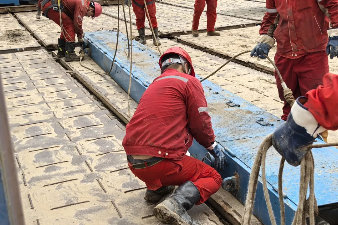 清晨的井场,车辆轰鸣、吊臂林立,1205钻井队的队员们正与时间赛跑。拆解设备、吊装运输、紧固零件,汗水浸透工装,号子声盖过风声。当被问及“没有鲜花蛋糕是否遗憾”时,队员们笑着摇头:“井场就是最美的舞台,忙碌的搬家现场就是我们为05队庆生的盛宴。”