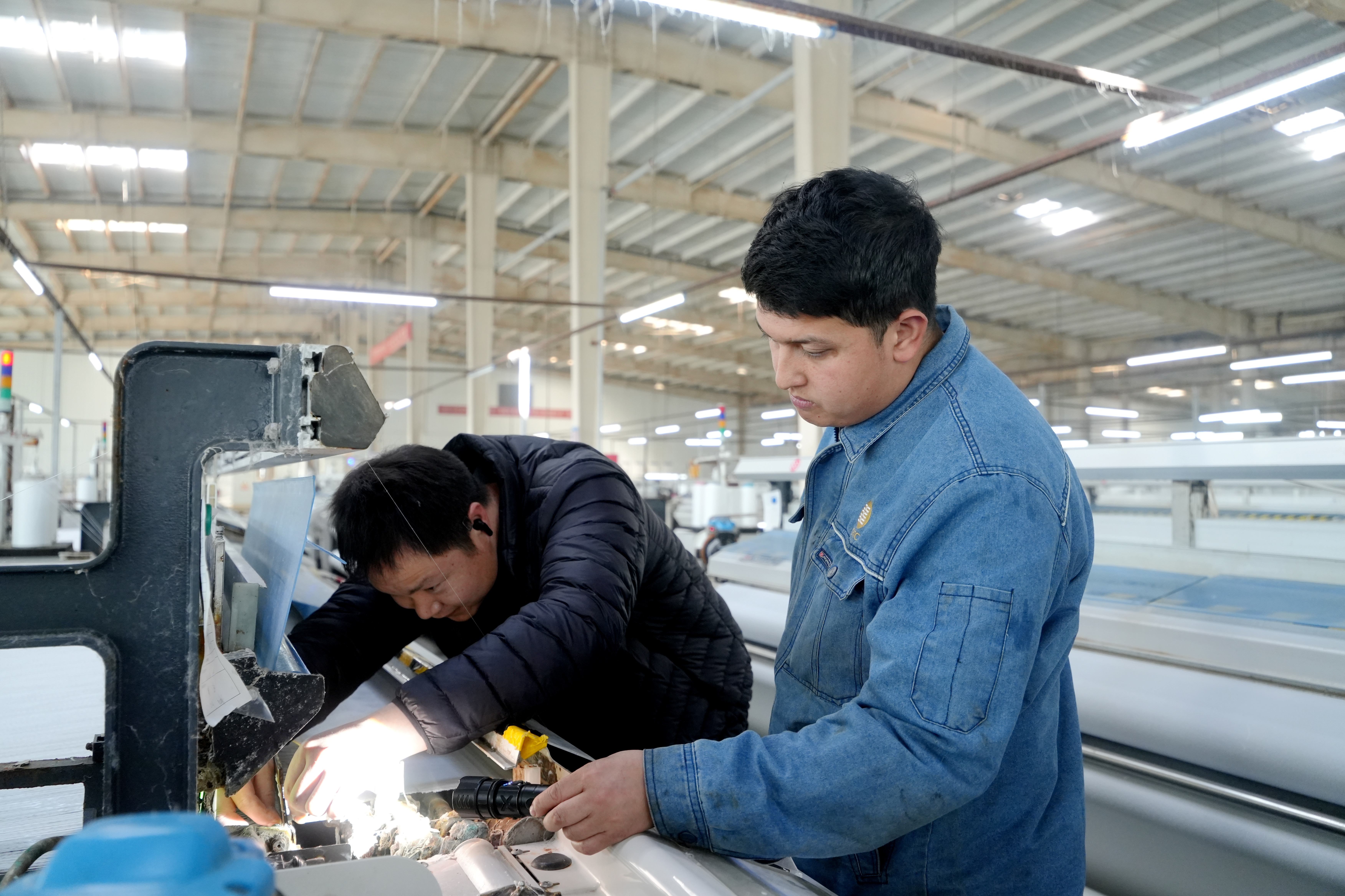 企业发展的同时,持续反哺地方民生。目前,企业本地员工占比超八成,通过岗前技能培训、在岗能力提升等举措,帮助当地群众掌握专业技能,实现就近就业、稳定增收。“我负责800台机器的保养、维修和配件更换,保障机台24小时正常运转。”浙苏石化家纺科技(阿克苏)有限公司织造事业部保养上轴工班长艾孜买提·艾尼瓦尔说。