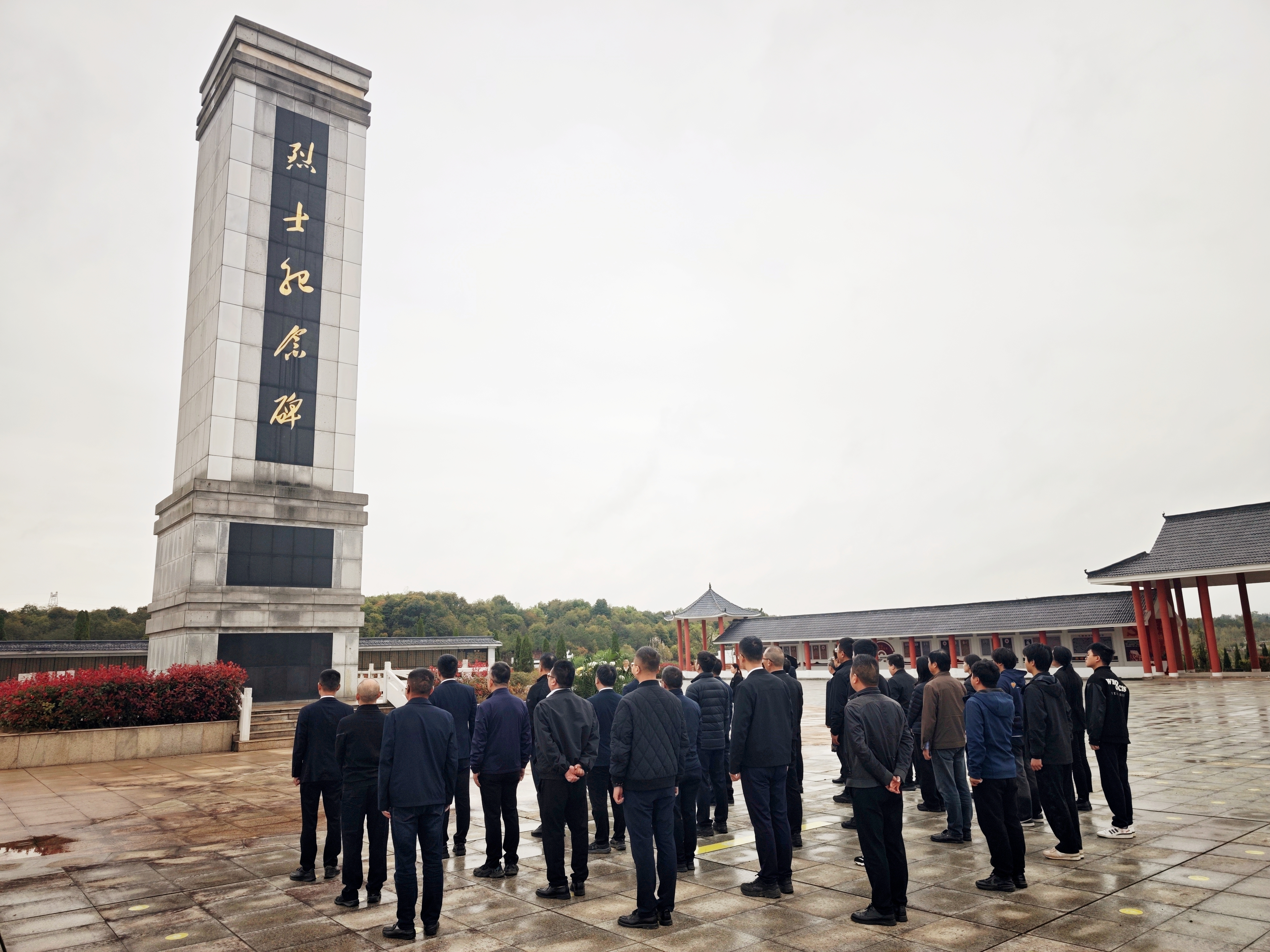 祭扫活动在弋阳县烈士陵园有序开展,全程简洁庄重、务实高效,无任何多余的仪式化环节。全体党员身着统一服装,整齐列队,身姿挺拔,高唱中华人民共和国国歌,歌声铿锵有力,传递出建设者的责任与担当;随后,全体人员低头默哀三分钟,深切缅怀为革命事业英勇献身的先烈们,默哀结束后,党员代表缓步上前,向烈士纪念碑敬献花篮,小心翼翼整理花篮缎带,动作庄重肃穆。全体人员面向纪念碑深深三鞠躬,随后依次缓步上前,将手中的白菊轻轻放在纪念碑前,逐一瞻仰纪念碑上的烈士名录,低声寄托哀思,以最朴素、最真诚的方式,表达对革命先烈的崇高敬意,现场氛围庄重而肃穆,让每一位党员都接受了深刻的精神洗礼。
