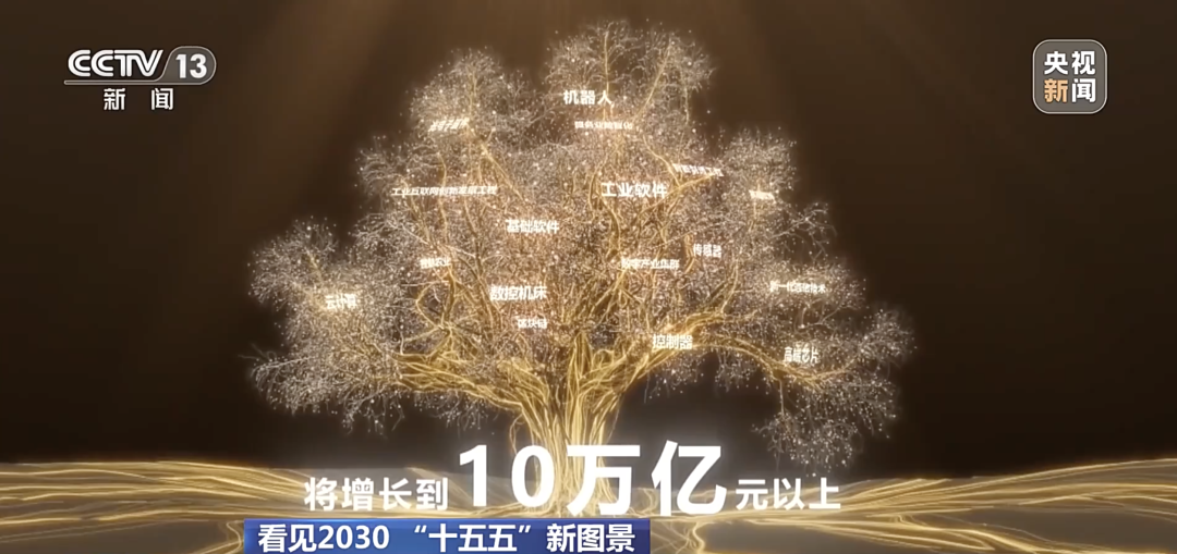 在“数智化”的拉动下,未来五年,全国一体化算力网将越织越密,数据基础设施预计每年吸引直接投资约4000亿元;智能产业全面开花,工业软件、传感器、控制器、机器人、数控机床等智能装备需求持续增长,仅云计算市场规模就有望突破3万亿元。预计到“十五五”末,人工智能相关产业规模将增长到10万亿元以上。