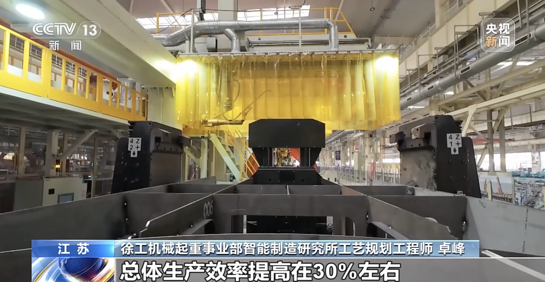 徐工机械起重事业部智能制造研究所工艺规划工程师卓峰表示,以前换型的准备周期需要五到六个小时,“进入数智化时代,设备会思考了,总体生产率提高30%左右,工程机械可以实现定制化生产”。