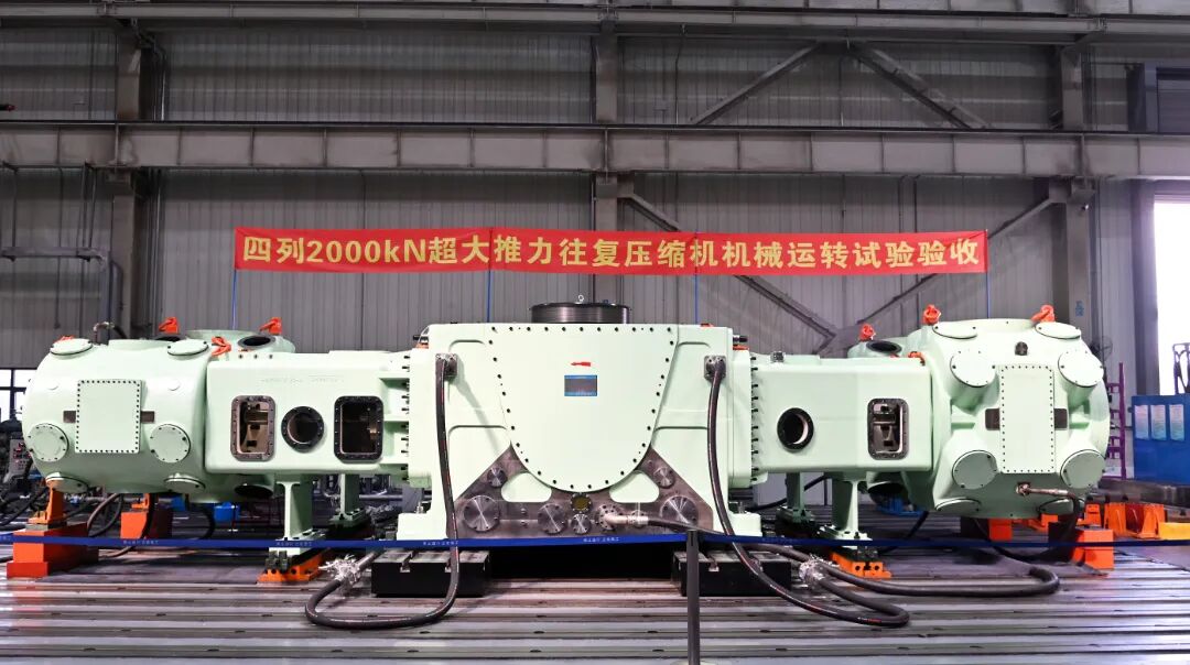 该机组许用综合杆载荷达到2000kN,是目前世界上许用综合杆载荷最大的工艺往复压缩机组,也是全球首套完成研制交付的2000kN级超大推力往复压缩机,标志着我国在高端往复压缩机装备领域实现重大跨越。