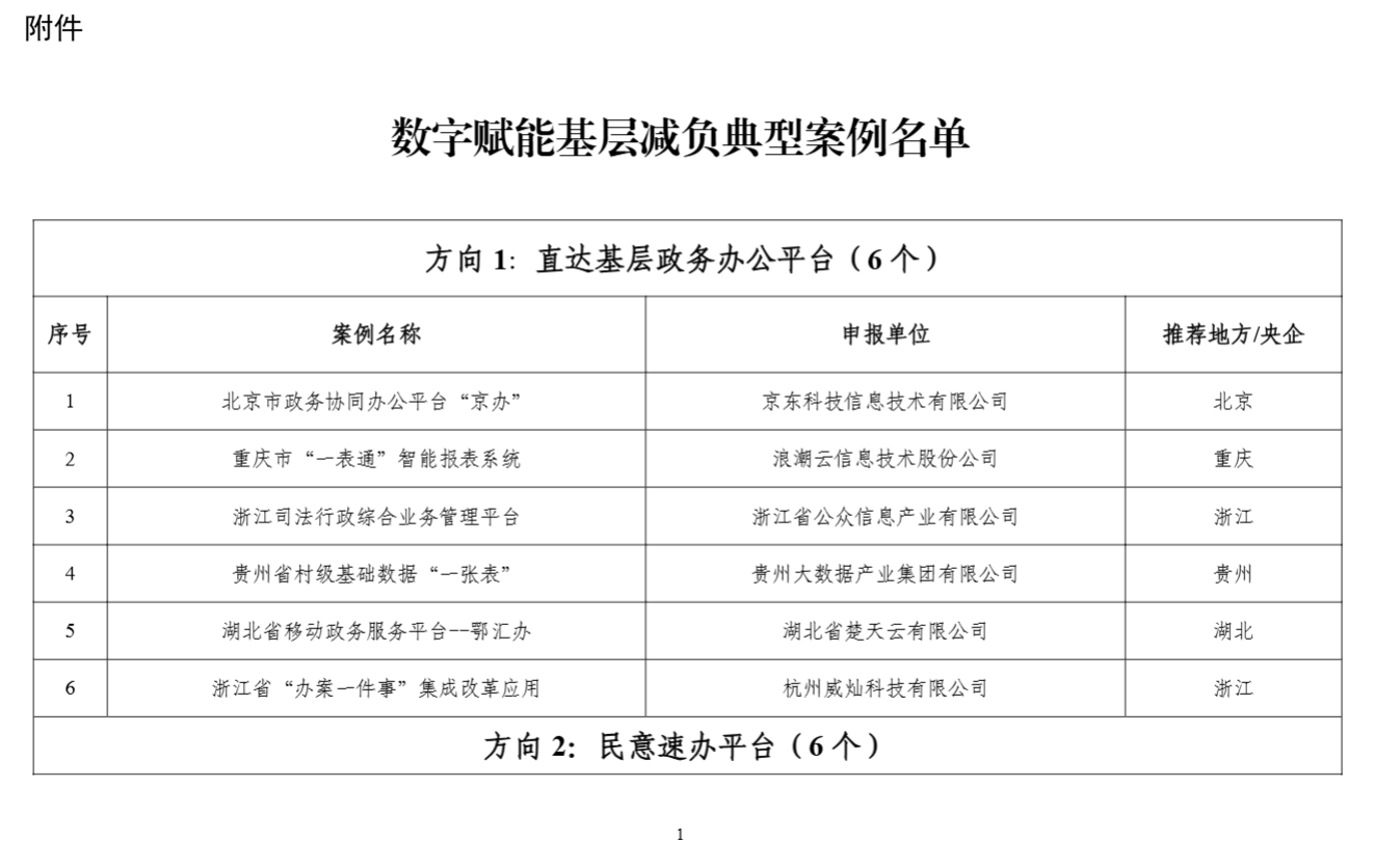 工业和信息化部办公厅关于公布数字赋能基层减负典型案例名单的通知